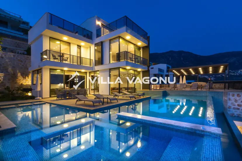 Kalkan Kalamar mevkiinde bulunan villa, 5 yatak odasıyla 10 kişilik konaklama kapasitesi sunmaktadır. Deniz manzarasına sahip olan villa, kalabalık aile ve arkadaş grupları için uygun seçenekler arasındadır.